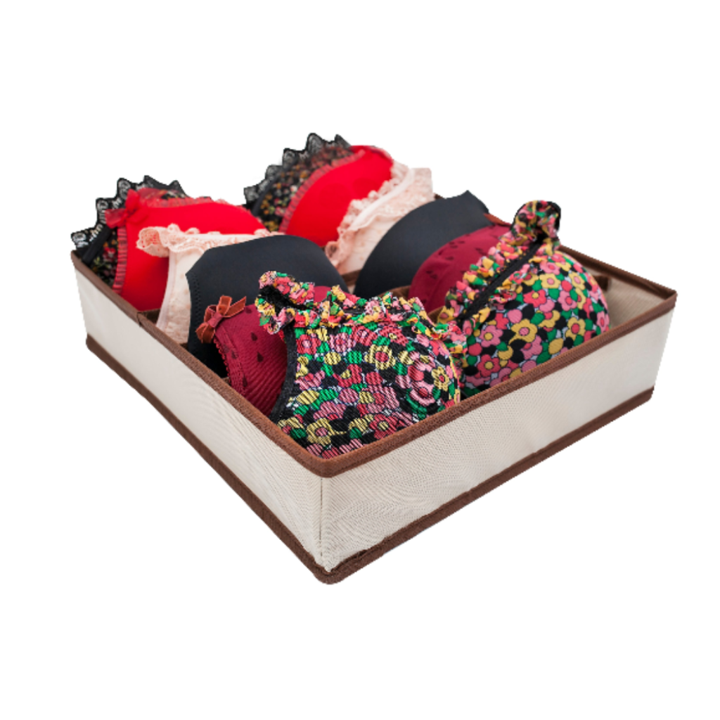 Ordená tus prendas íntimas con este práctico organizador de tela con compartimentos individuales. Ideal para sujetadores, bragas, calcetines o accesorios pequeños, protege y clasifica cada pieza evitando enredos y deformaciones. Fabricado en tela transpirable, es resistente, suave y fácil de mantener. Su diseño compacto se adapta perfectamente a cajones, cómodas o estanterías, optimizando el espacio y simplificando tu rutina diaria.