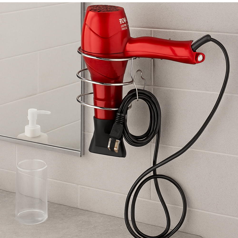 Este soporte para secador de pelo es la solución perfecta para mantener tu baño o tocador ordenado y funcional. Su diseño en espiral permite sujetar el secador de forma segura, evitando enredos de cables y liberando espacio en el tocador. Fabricado en acero inoxidable con acabado brillante, se instala fácilmente en la pared y se adapta a distintos modelos de secador.